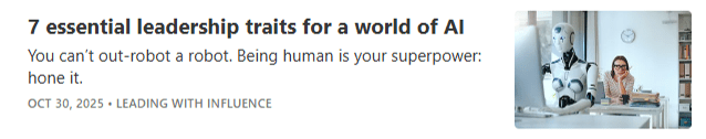 Leadership today is not about hierarchy. It is about influence. I would like to introduce you to a new model that I have been using in my 'leading change', 'leadership development' and 'leading with influence' programs and webinars - [...]